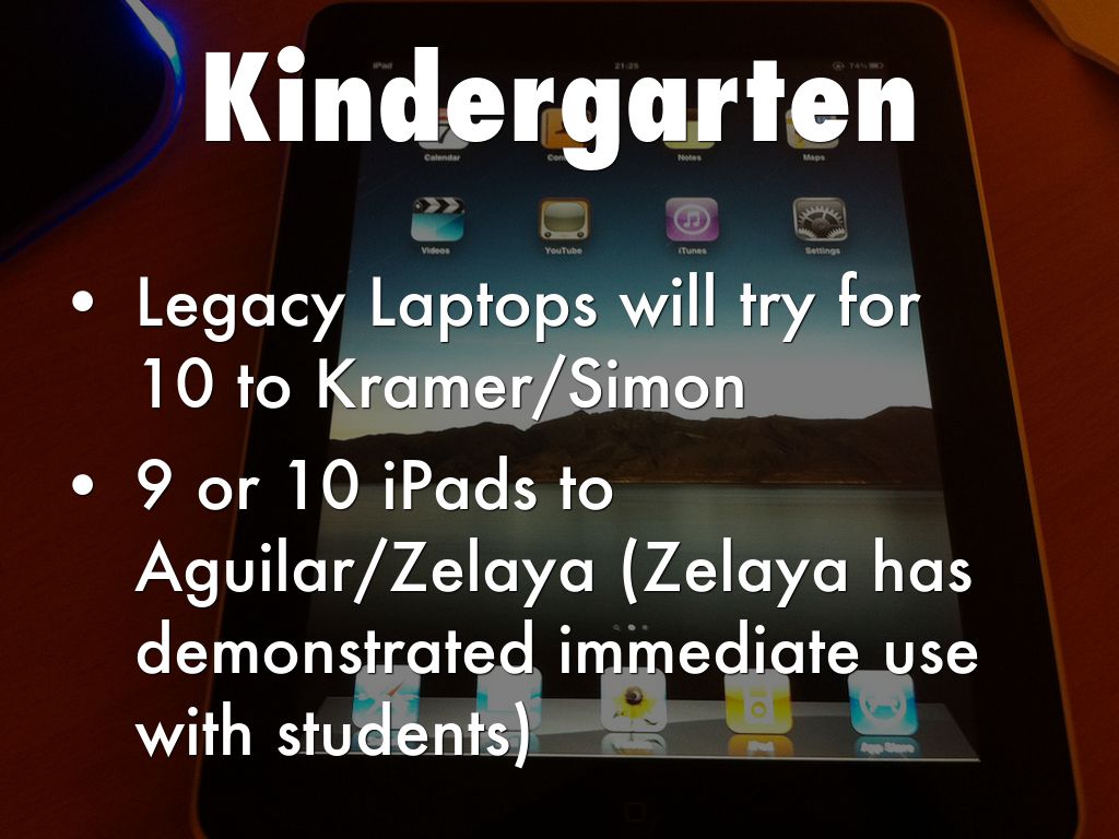 • 9 or 10 iPads to Aguilar/Zelaya (Zelaya has demonstrated immediate use with students)