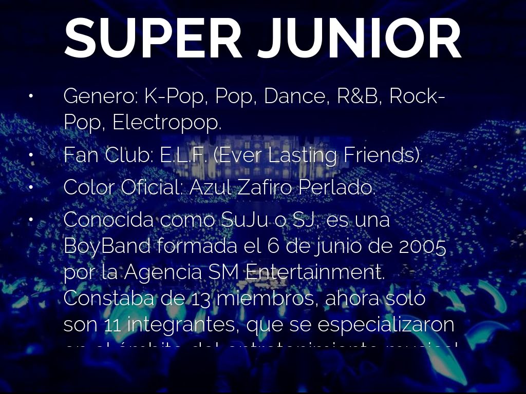 - Conocida como SuJu o SJ, es una BoyBand formada el 6 de junio de 2005 por la Agencia SM Entertainment. Constaba de 13 miembros, ahora solo son 11 integrantes, que se especializaron en el ámbito del entretenimiento musical y actoral.