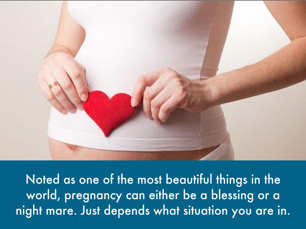 Noted as one of the most beautiful things in the world, pregnancy can either be a blessing or a night mare. Just depends what situation you are in.