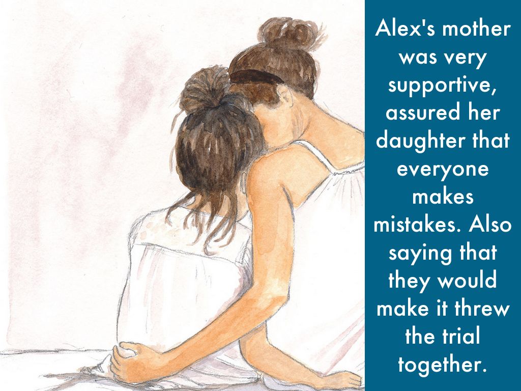 Alex's mother was very supportive, assured her daughter that everyone makes mistakes. Also saying that they would make it threw the trial together.
