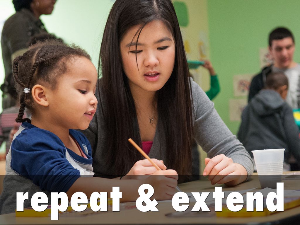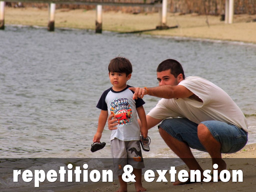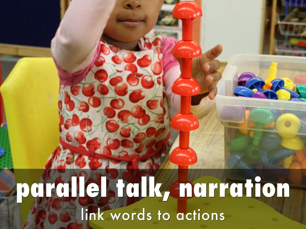 Can expose children to more complex vocabulary using repeat & extend strategy. Child says, "It's cold outside," you say, "Yes! I noticed it was chilly this morning." OR narration, "Wow, you are using compression to keep your block tower from falling down. The top blocks are pushing down through the center of all the rest!"