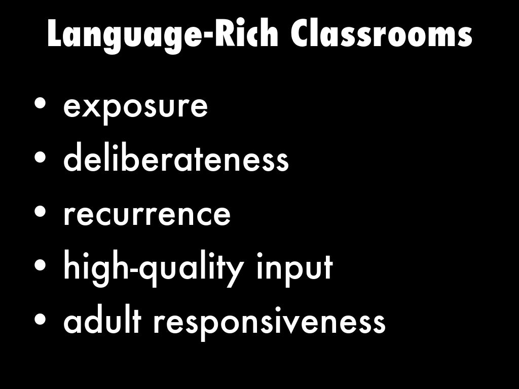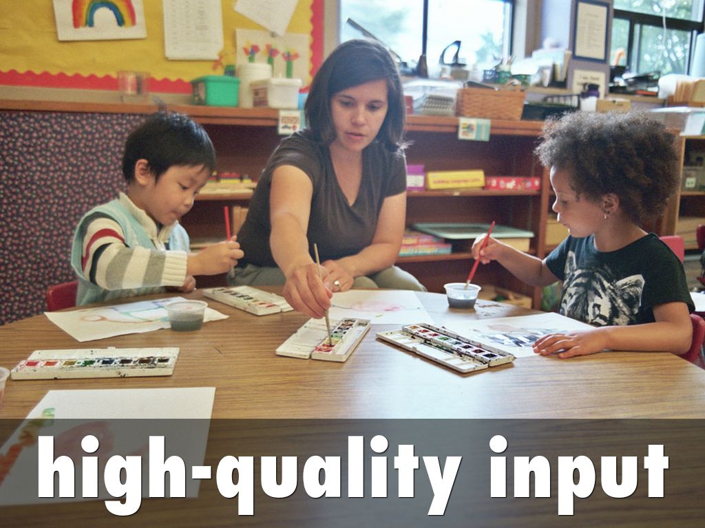 "High-quality input means that adult language in the classroom is characterized by diverse content, form, and use. Content, form, and use are the three