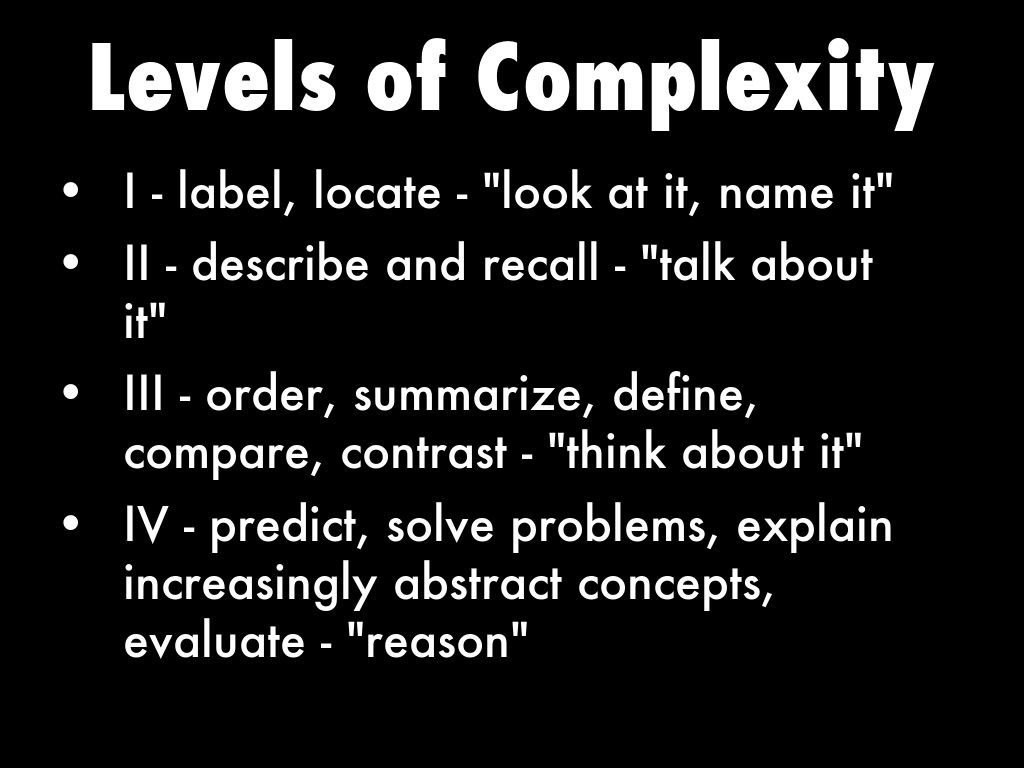 • IV - predict, solve problems, explain increasingly abstract concepts, evaluate - "reason"