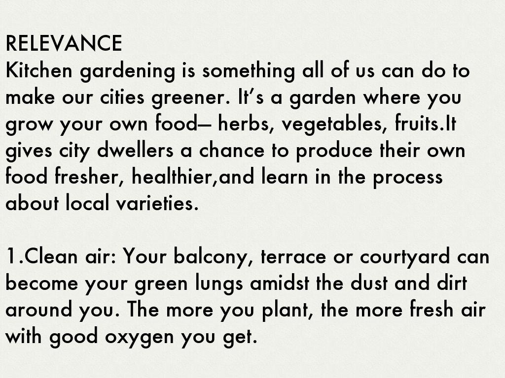 Kitchen gardening is something all of us can do to make our cities greener. It’s a garden where you grow your own food— herbs, vegetables, fruits.It gives city dwellers a chance to produce their own food fresher, healthier,and learn in the process about local varieties.