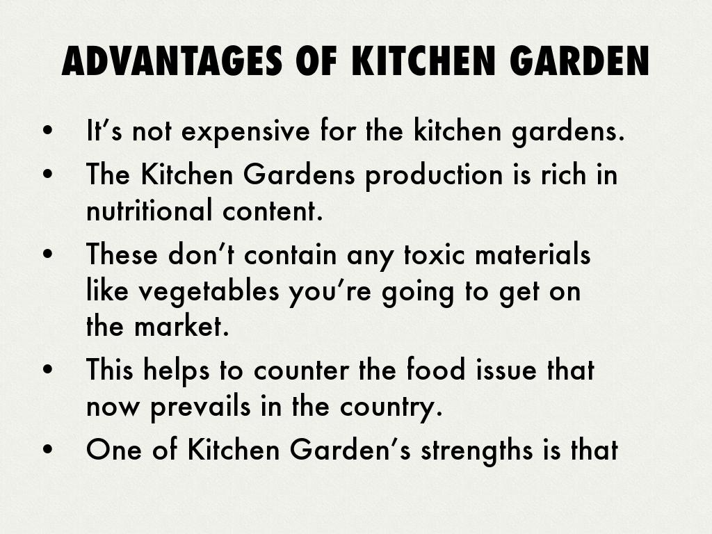 - One of Kitchen Garden’s strengths is that the vegetables contain vitamins and minerals of all kinds.