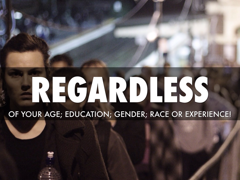 OF YOUR AGE; EDUCATION; GENDER; RACE OR EXPERIENCE!