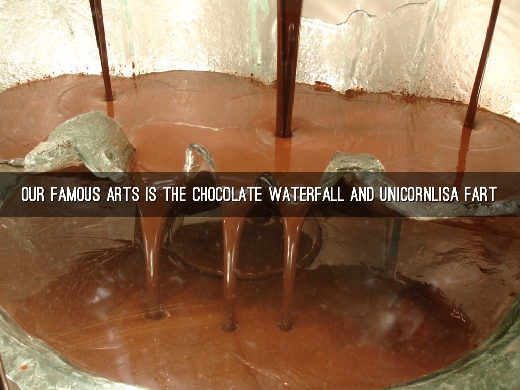 OUR FAMOUS ARTS IS THE CHOCOLATE WATERFALL AND UNICORNLISA FART