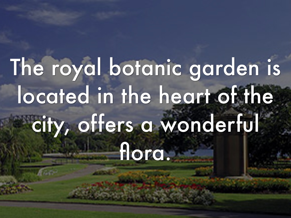 The royal botanic garden is located in the heart of the city, offers a wonderful flora.
