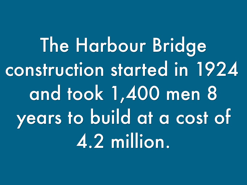 The Harbour Bridge construction started in 1924 and took 1,400 men 8 years to build at a cost of 4.2 million.
