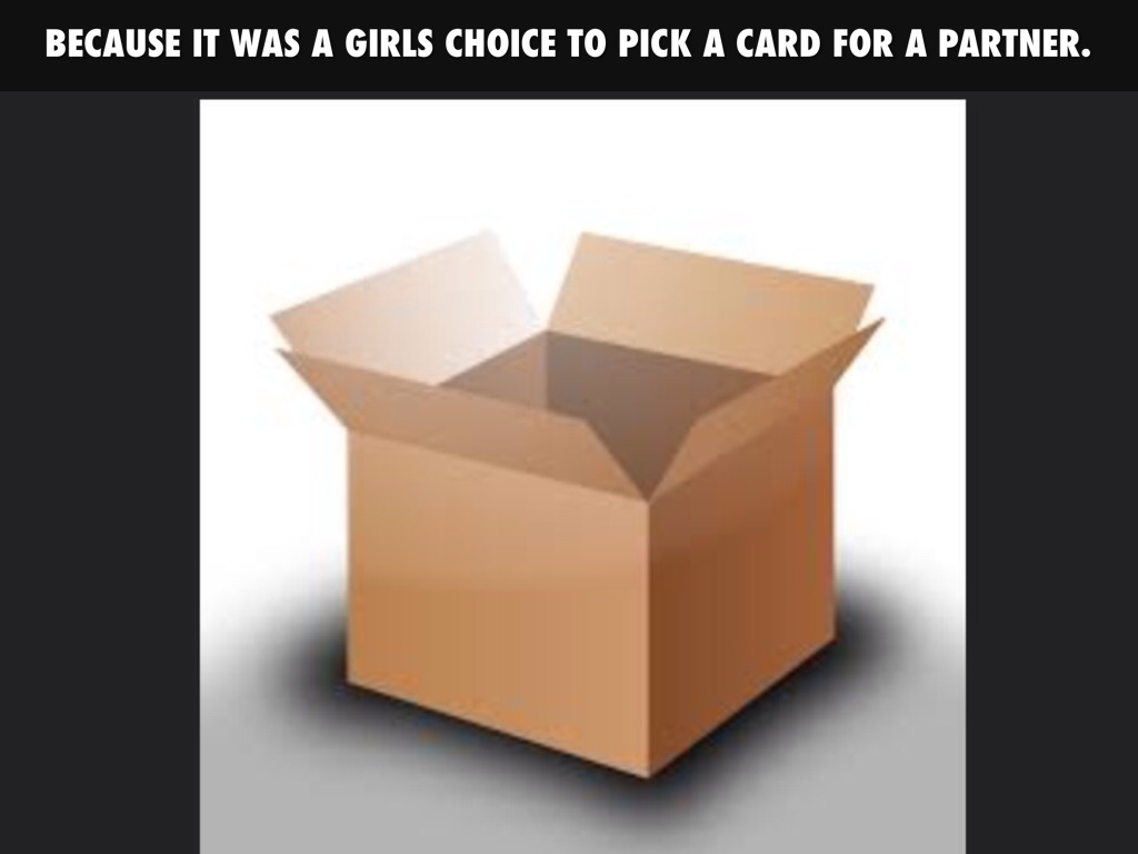 BECAUSE IT WAS A GIRLS CHOICE TO PICK A CARD FOR A PARTNER.
