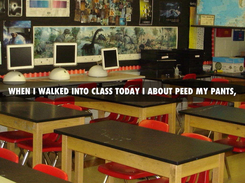 WHEN I WALKED INTO CLASS TODAY I ABOUT PEED MY PANTS,