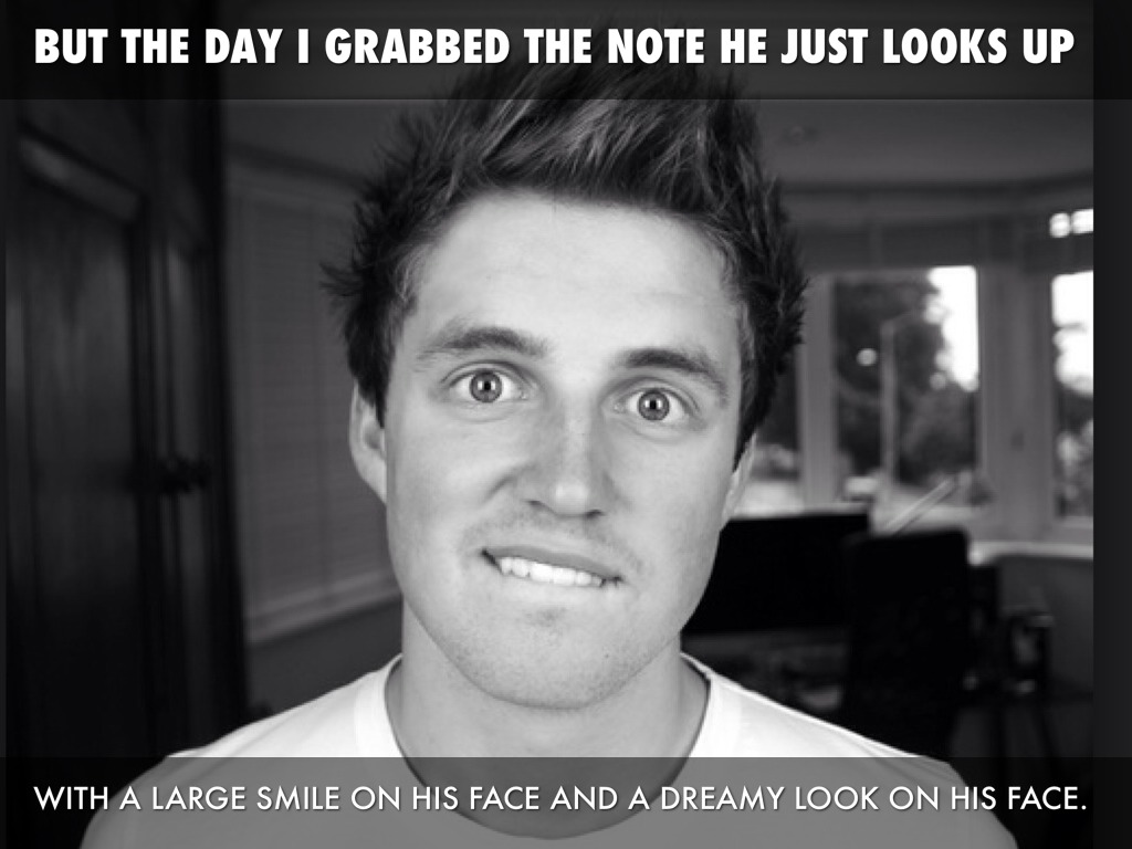 BUT THE DAY I GRABBED THE NOTE HE JUST LOOKS UP