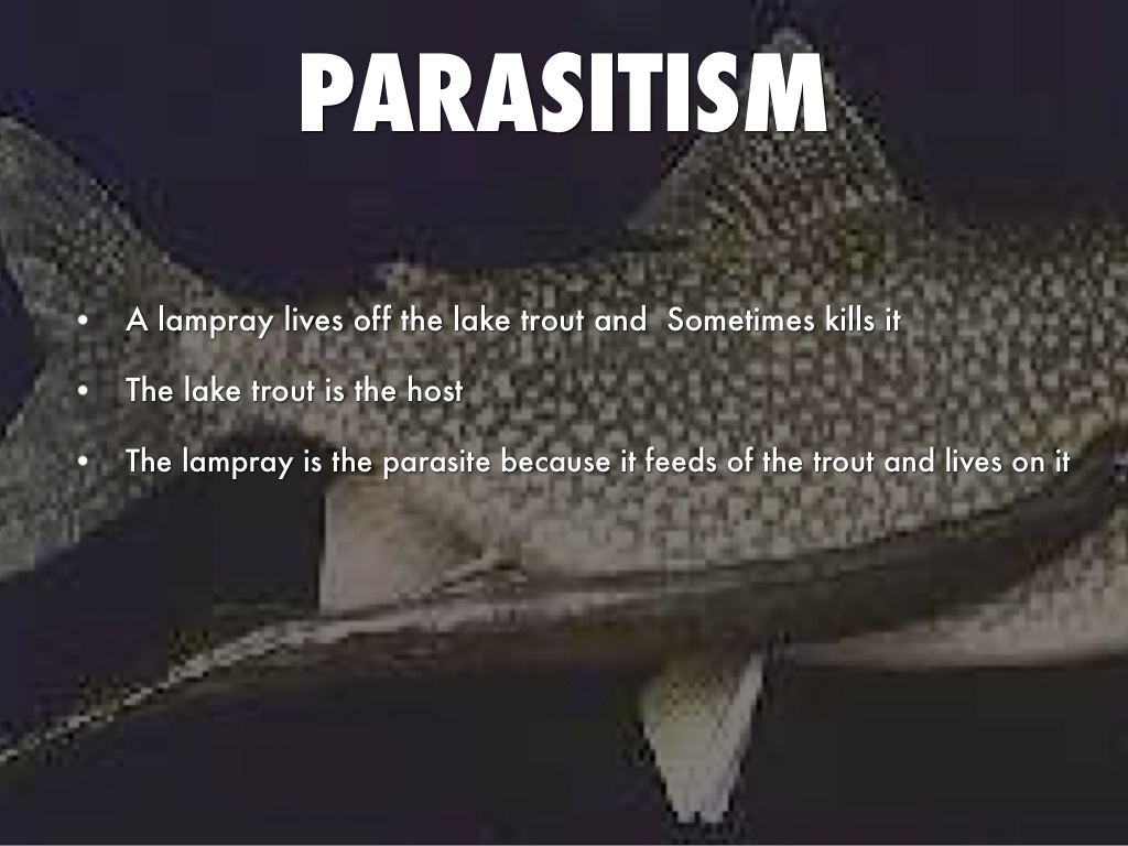 A lampray lives off the lake trout and Sometimes kills it
