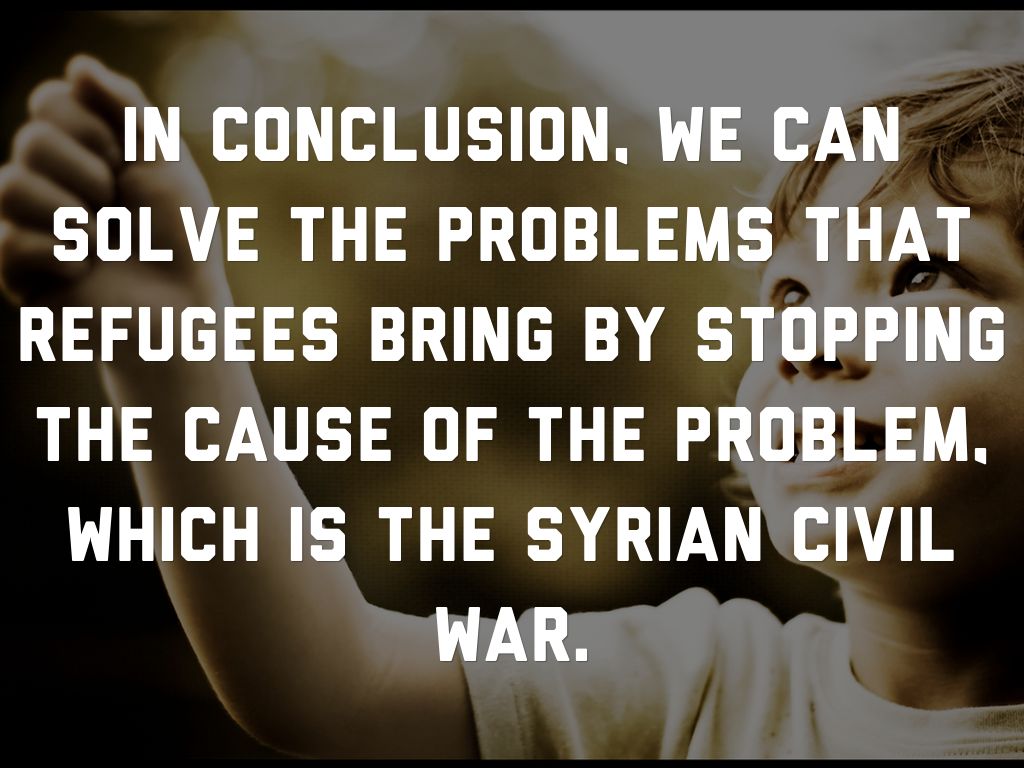 In conclusion, we can solve the problems that refugees bring by stopping the cause of the problem, which is the Syrian civil war.