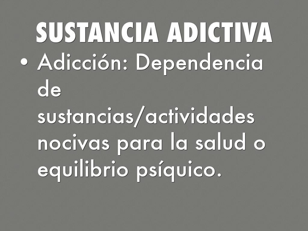 Adicción: Dependencia de sustancias/actividades nocivas para la salud o equilibrio psíquico.