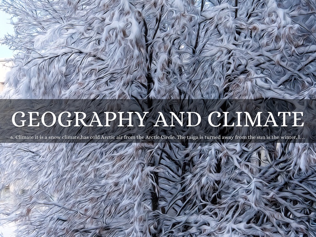 6. Climate it is a snow climate,has cold Arctic air from the Arctic Circle. The taiga is turned away from the sun is the winter, last for six to seven months. Fall is the shortest season .Spring brings flowers , the flower s are frozen.