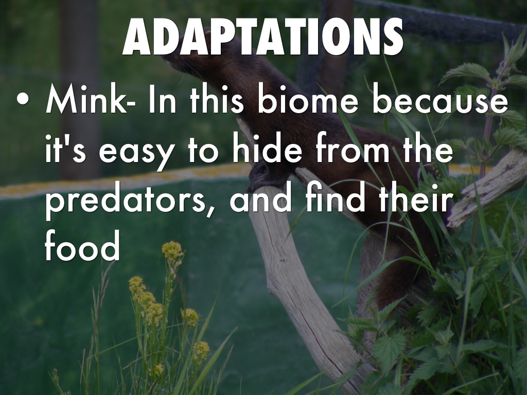 Mink- In this biome because it's easy to hide from the predators, and find their food