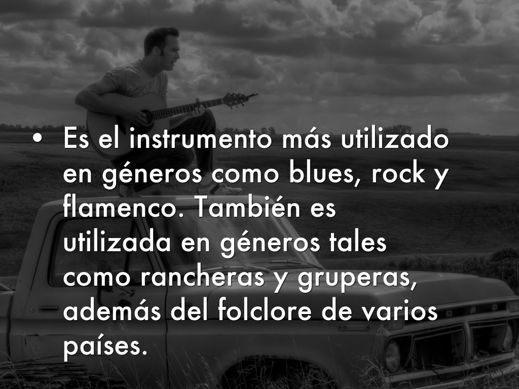 • Es el instrumento más utilizado en géneros como blues, rock y flamenco. También es utilizada en géneros tales como rancheras y gruperas, además del folclore de varios países.