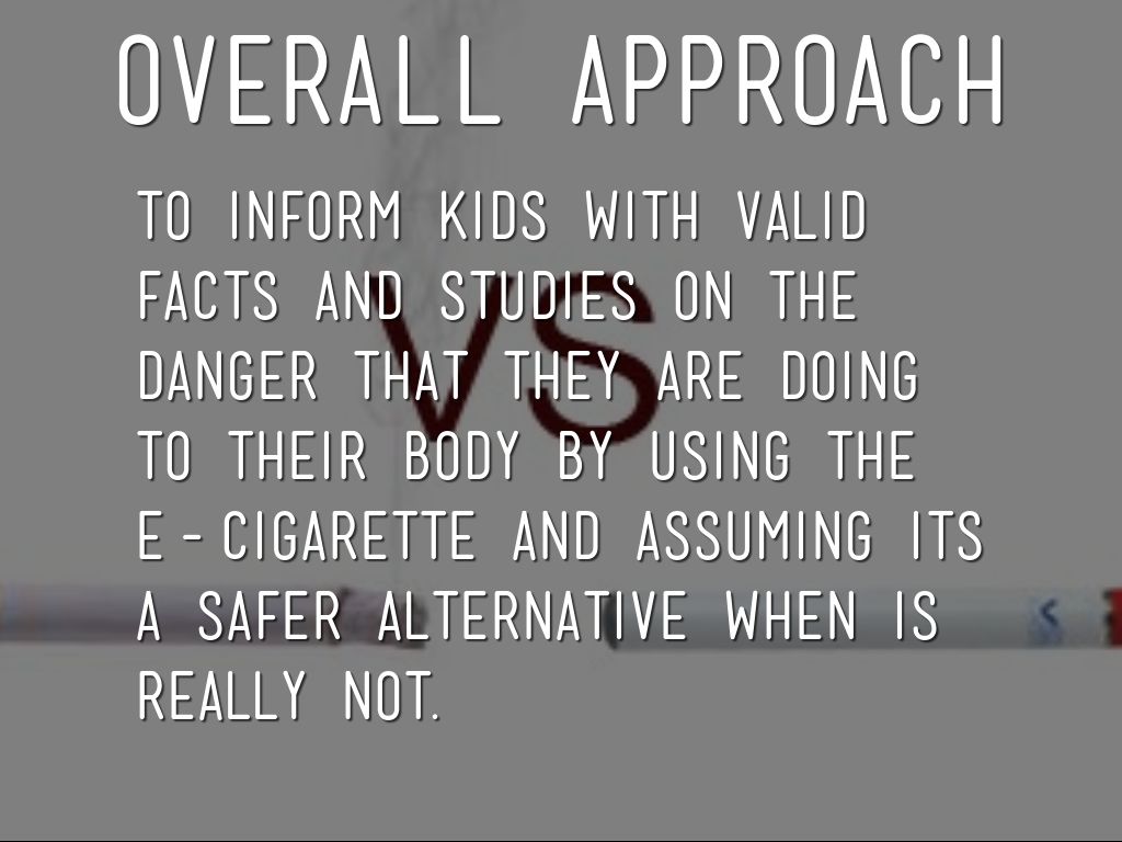 to inform kids with valid facts and studies on the danger that they are doing to their body by using the e-cigarette and assuming its a safer alternative when is really not.
