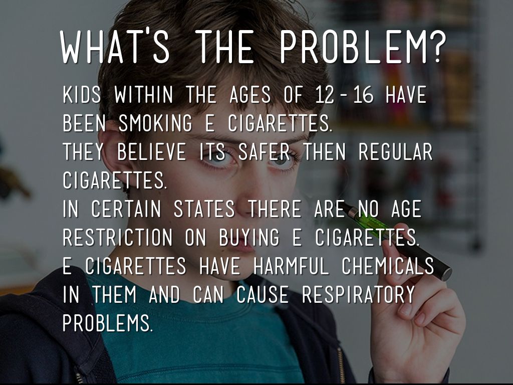 E cigarettes have harmful chemicals in them and can cause respiratory problems.
