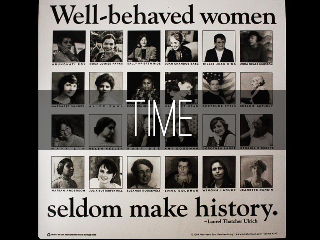 Sojourner Truth, Susan B. Anthony, Elizabeth Stanton, Margaret Sanger, Elizabeth Blackwell, Victoria Claflin Woodhull, Mary McLeod Bethune, Blanche Scott, Florence Ellinwood Allen, Jeannette Rankin, Rosa Parks, Ella Grasso, Dolores Huerta, Sandra Day O'Connor, Lt. Col. Eileen Collins, Madeleine K. Albright