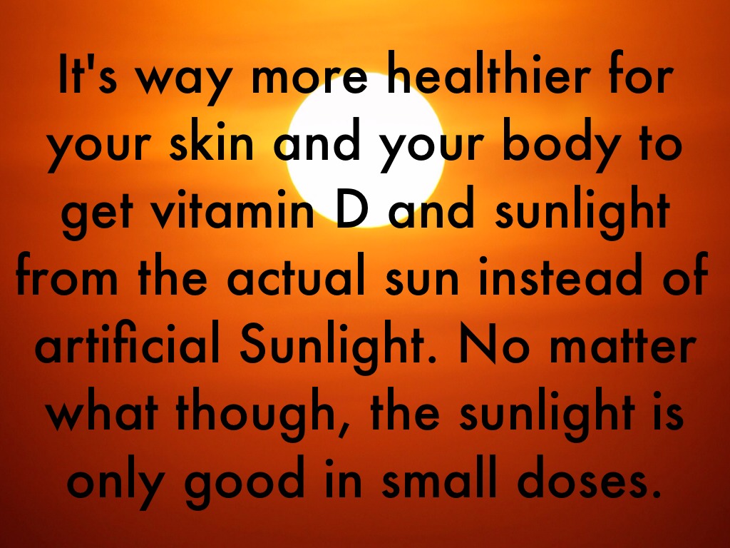 It's way more healthier for your skin and your body to get vitamin D and sunlight from the actual sun instead of artificial Sunlight. No matter what though, the sunlight is only good in small doses.