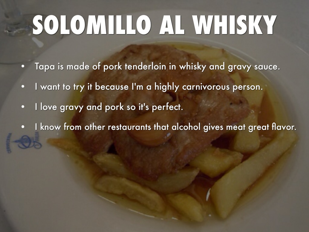 Tapa is made of pork tenderloin in whisky and gravy sauce.