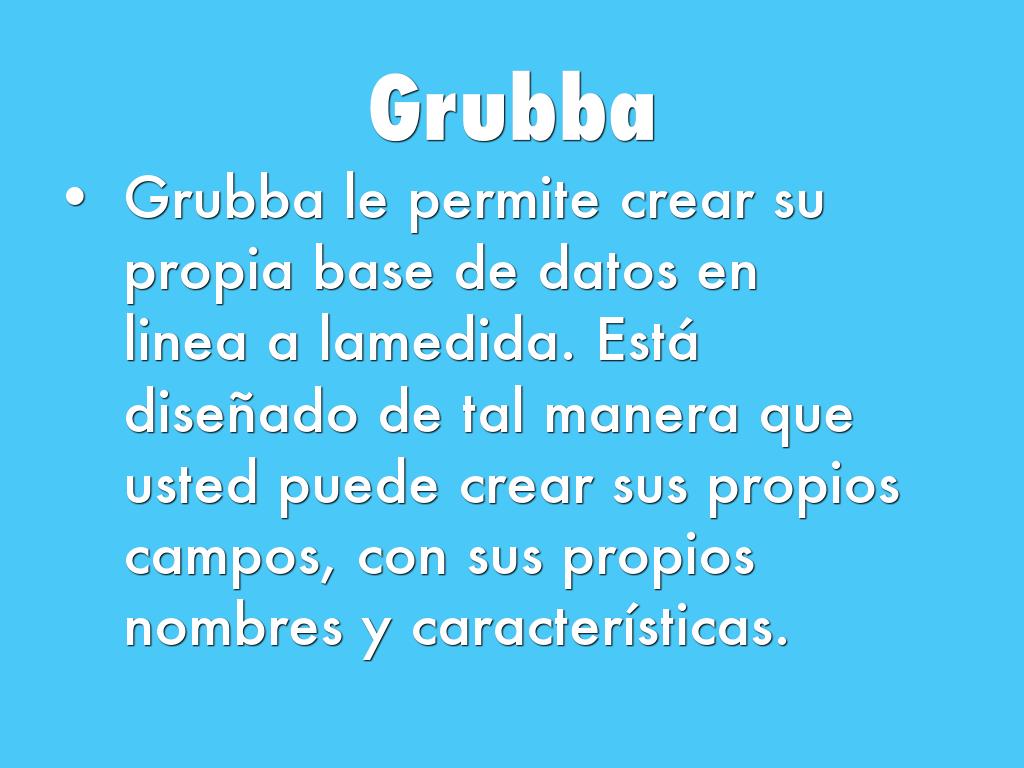 Grubba le permite crear su propia base de datos en linea a lamedida. Está diseñado de tal manera que usted puede crear sus propios campos, con sus propios nombres y características.