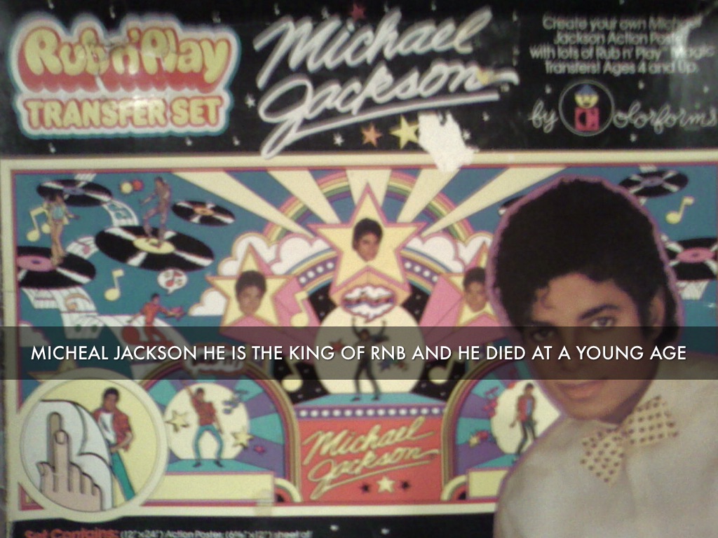 MICHEAL JACKSON HE IS THE KING OF RNB AND HE DIED AT A YOUNG AGE