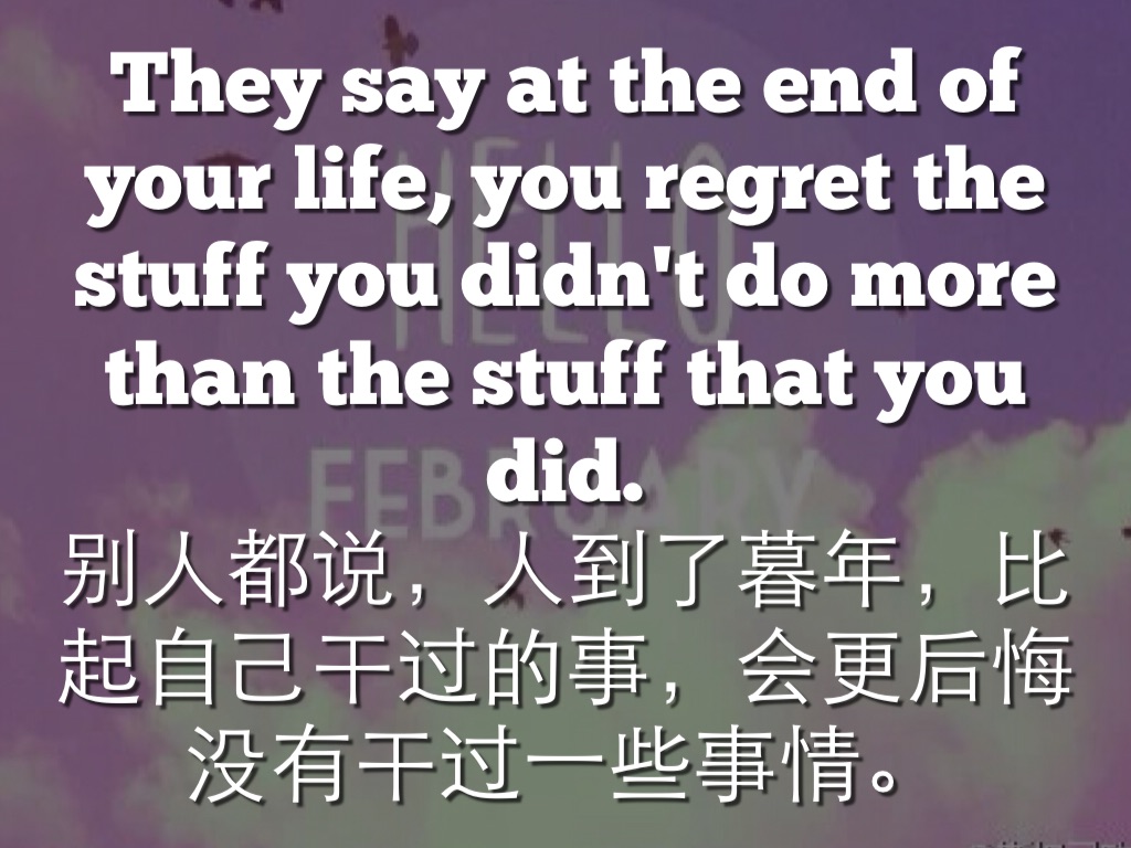 They say at the end of your life, you regret the stuff you didn't do more than the stuff that you did.