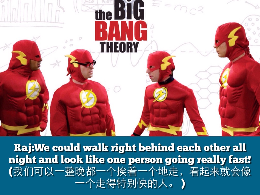 Raj:We could walk right behind each other all night and look like one person going really fast!