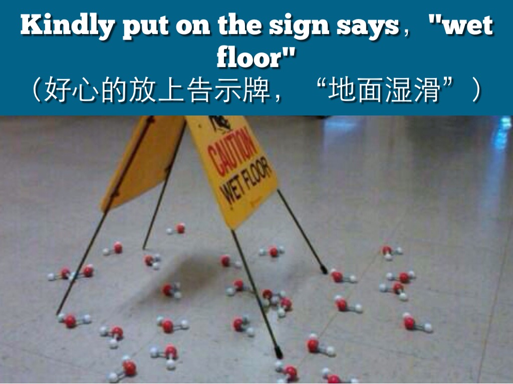(好心的放上告示牌,“地面湿滑”)
