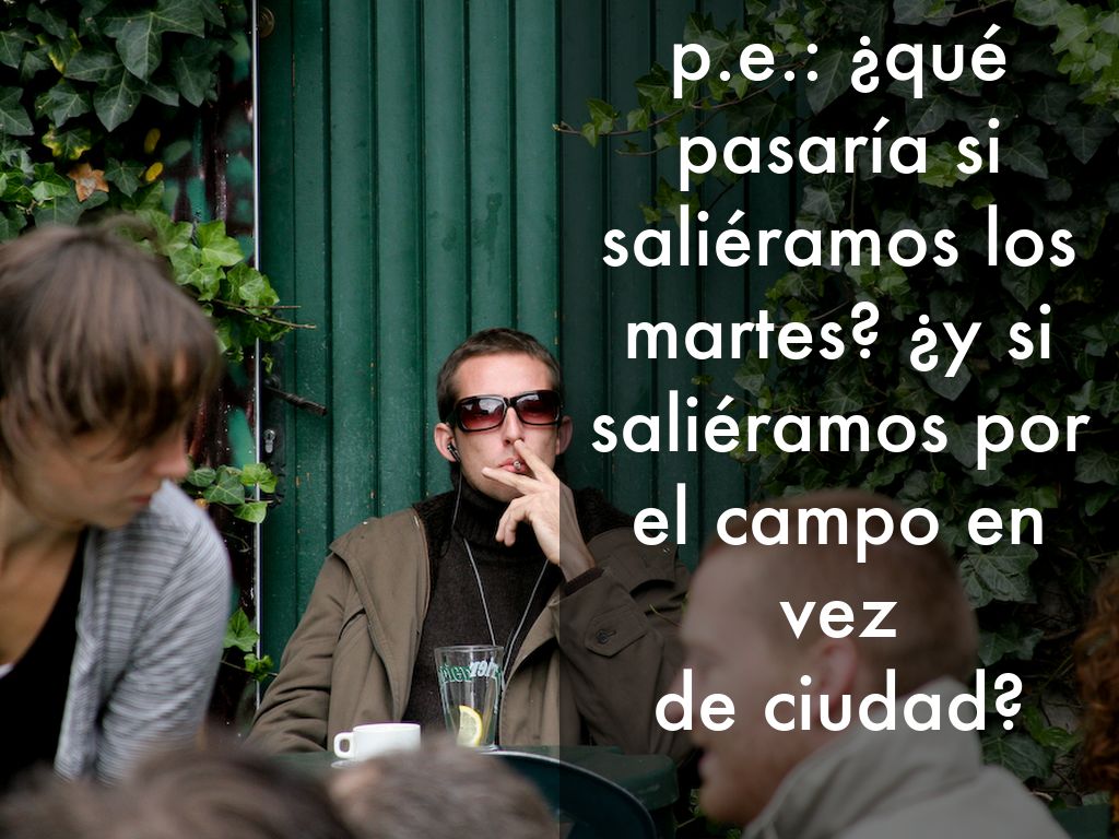 p.e.: ¿qué pasaría si saliéramos los martes? ¿y si saliéramos por el campo en vez