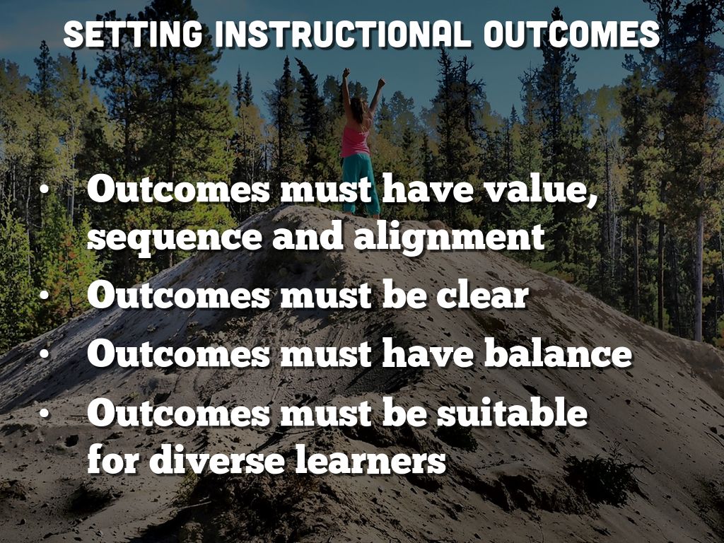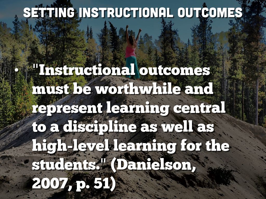 "Instructional outcomes must be worthwhile and represent learning central to a discipline as well as high-level learning for the students." (Danielson, 2007, p. 51)