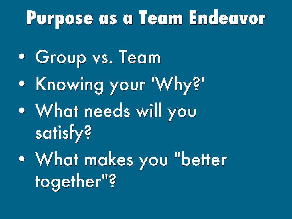 • Explain in 30 sec. how having a common purpose benefits a team.