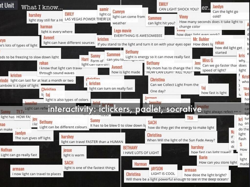 interactivity: iclickers, padlet, socrative