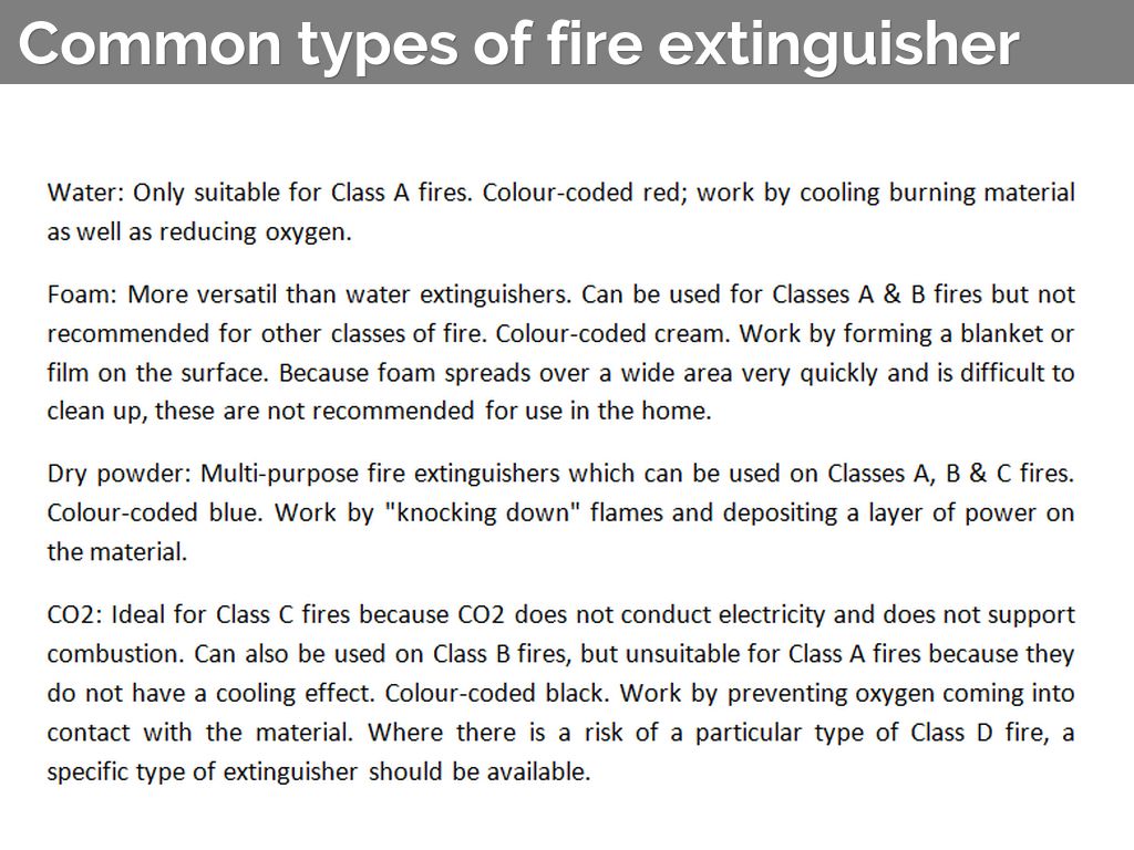 Foam can be used to deny the fire the oxygen it needs. Water can be used to lower the temperature of the fuel below the ignition point or to remove or disperse the fuel. Halon can be used to remove free radicals and create a barrier of inert gas in a direct attack on the chemical reaction responsible for the fire.