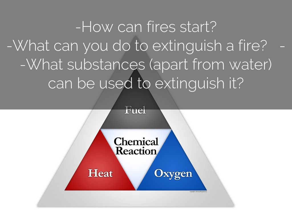 A fire can be prevented or extinguished by removing any one of the elements in the fire triangle.