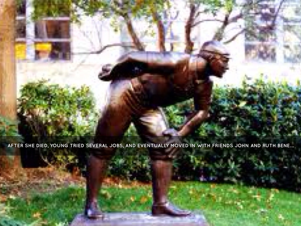 After she died, Young tried several jobs, and eventually moved in with friends John and Ruth Benedum and did odd jobs for them