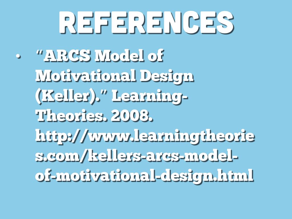 The ARCS model is a problem solving approach to designing the motivational aspects of learning environments to stimulate and sustain students’ motivation to learn (Keller, 1983, 1984, 1987). ARCS is a useful checklist, which draws upon some well established research. It provides a good summary of the issues to be considered when designing learning material. The ARCS model consists of four steps for