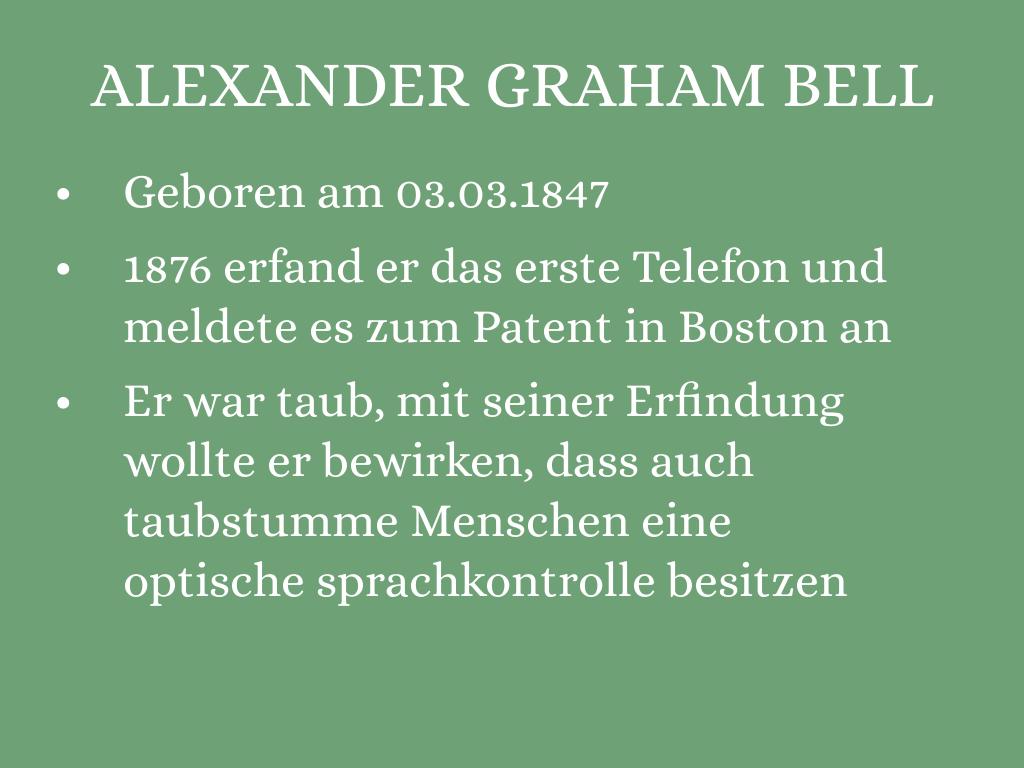 1876 erfand er das erste Telefon und meldete es zum Patent in Boston an