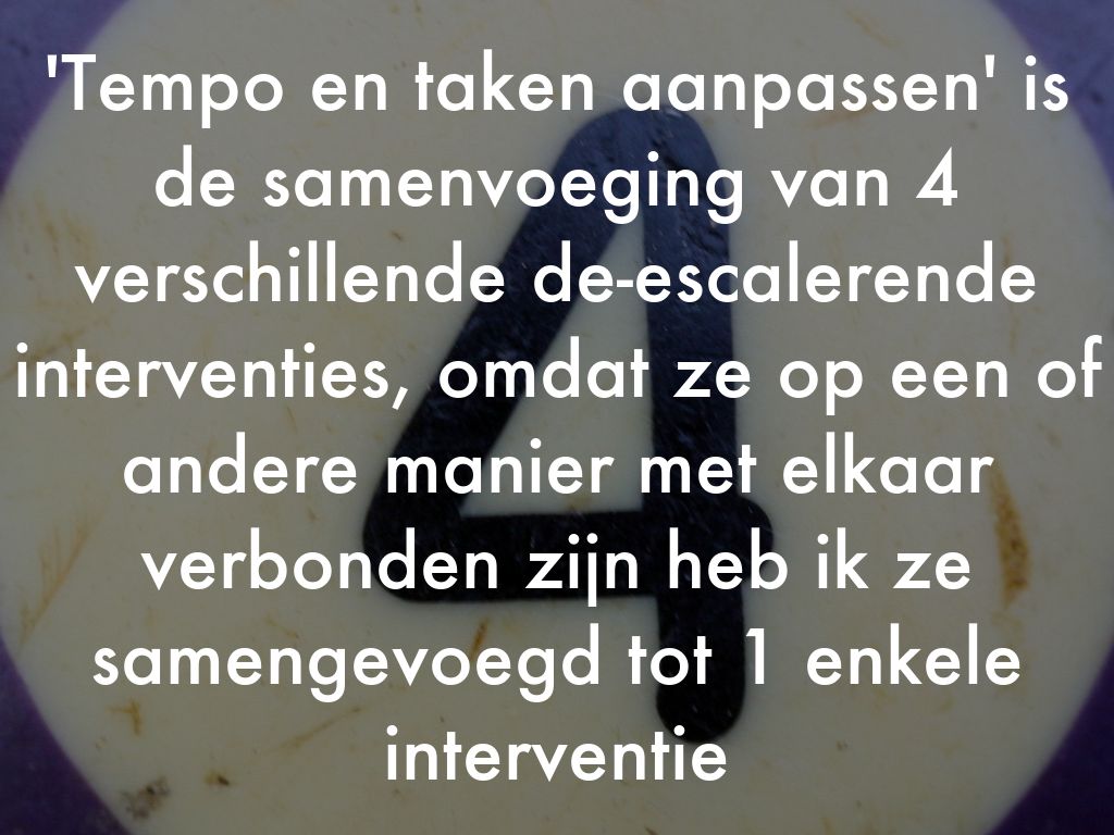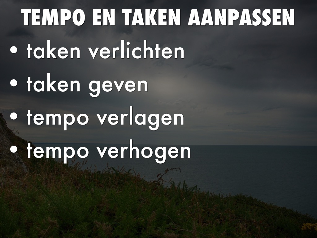 Wat hier aan te doen? Ten eerste is het van groot belang extra tijd in te je werkschema in te bouwen voor onvoorziene omstandigheden zodat je niet direct in een stressreactie schiet op het moment dat iets onverwacht gebeurt. Ten tweede is het belangrijk om telkens weer bewust te zijn van de ander zijn toestand. Is de ander van slag, voelt hij zich ziek, heeft hij te maken met extra spanning? Geef hem dan meer tijd voor het uitvoeren van zijn taak. Verlaag je werktempo en laat hem zien dat je rekening houdt met zijn toestand, grote kans dat hij je een prettige iemand gaat vinden en dat hij zich meegaand zal opstellen, als jij in een volgende moment degene bent die zijn hulp nodig heeft.