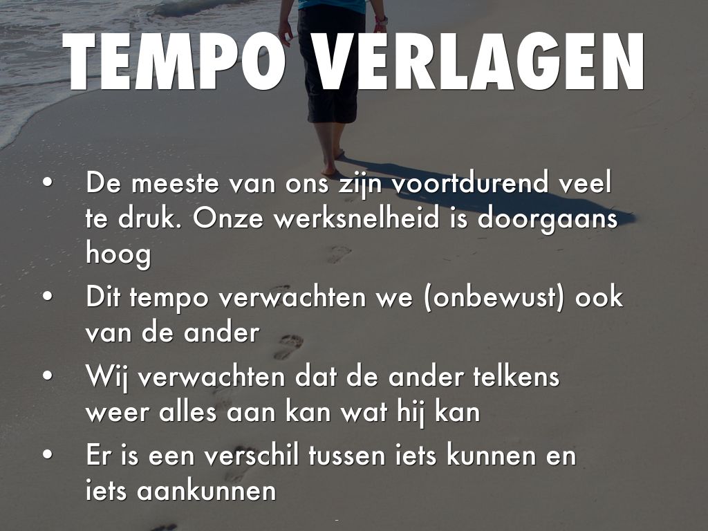- Dit tempo verwachten we (onbewust) ook van de ander