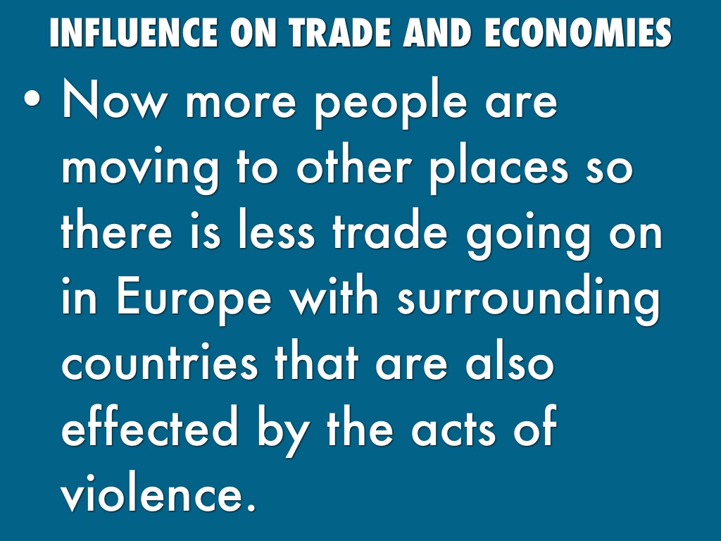 Now more people are moving to other places so there is less trade going on in Europe with surrounding countries that are also effected by the acts of violence.