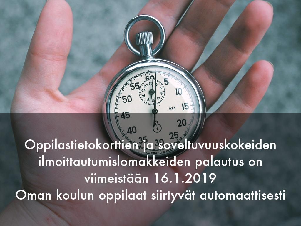 Oppilastietokorttien ja soveltuvuuskokeiden ilmoittautumislomakkeiden palautus on viimeistään 16.1.2019