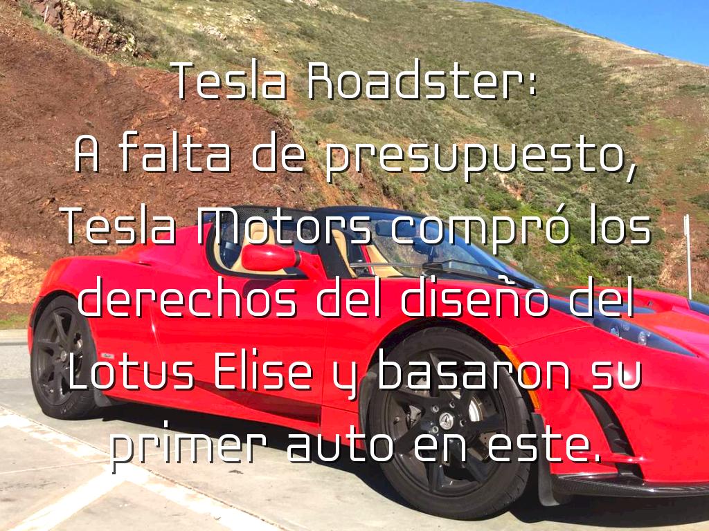 A falta de presupuesto, Tesla Motors compró los derechos del diseño del Lotus Elise y basaron su primer auto en este.