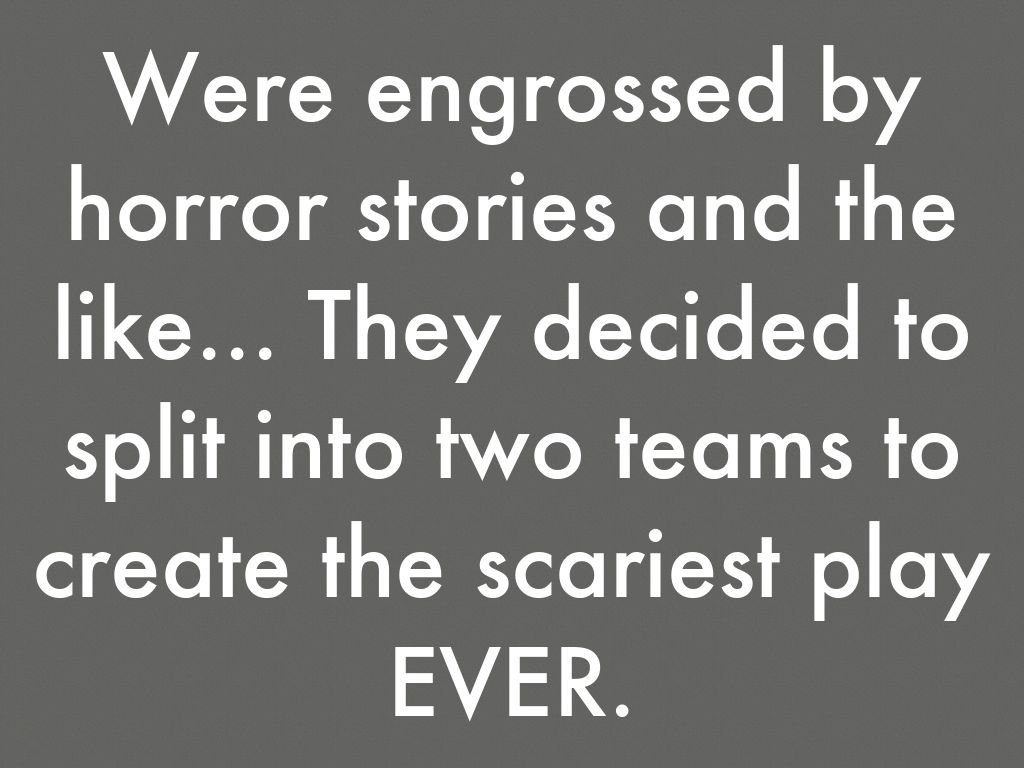Were engrossed by horror stories and the like... They decided to split into two teams to create the scariest play EVER.