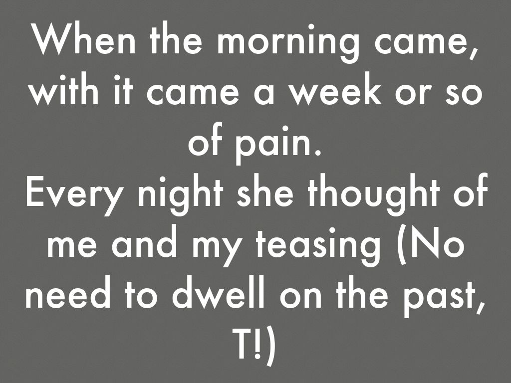 Every night she thought of me and my teasing (No need to dwell on the past, T!)