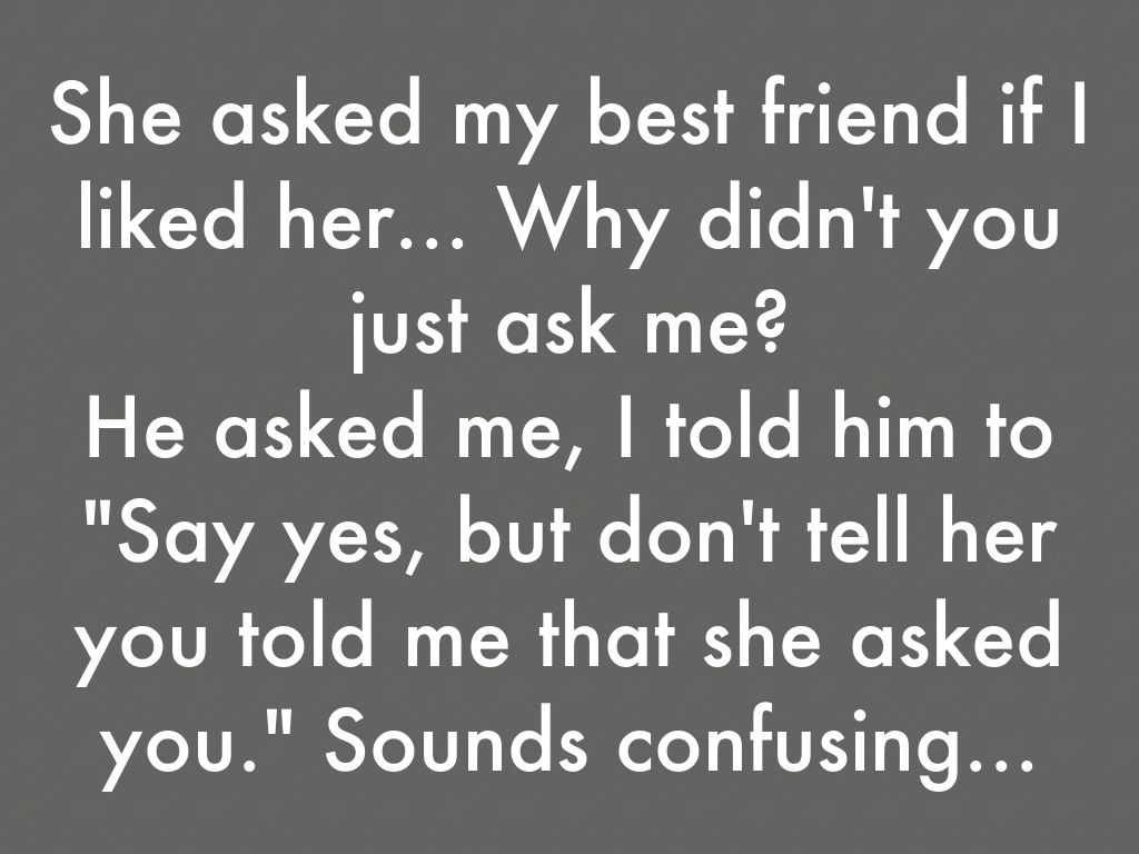 She asked my best friend if I liked her... Why didn't you just ask me?