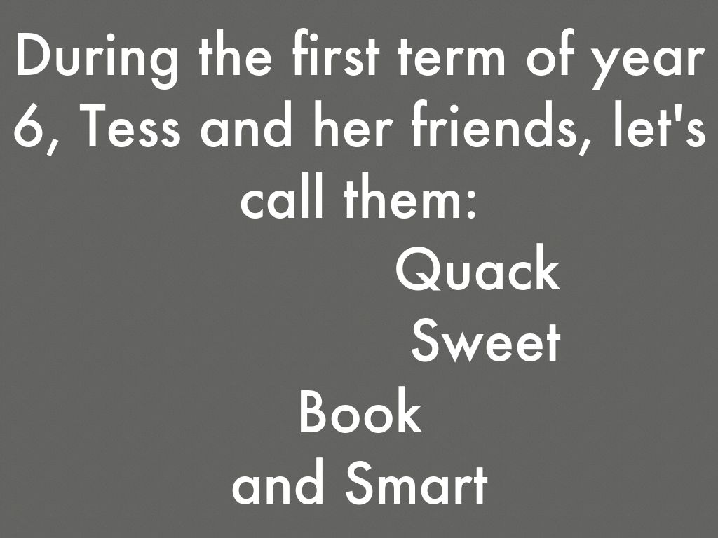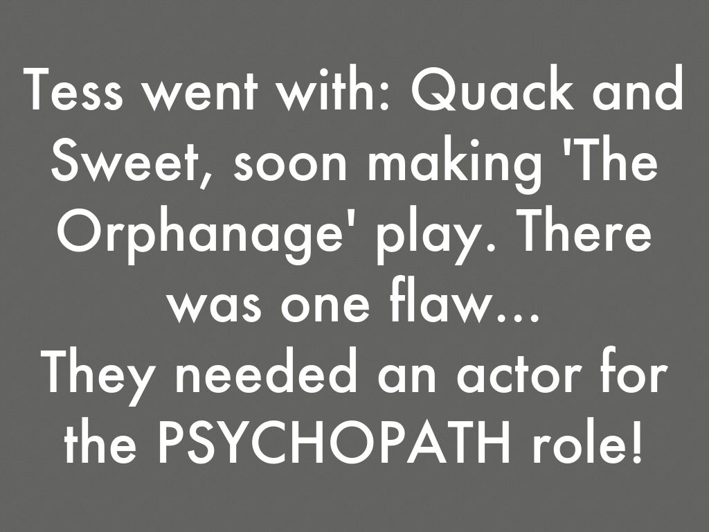 Tess went with: Quack and Sweet, soon making 'The Orphanage' play. There was one flaw...